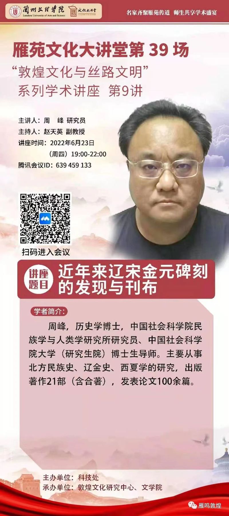 雁苑文化大讲堂——“敦煌文化与丝路文化”系列学术讲座第9讲(总第39讲)通知
