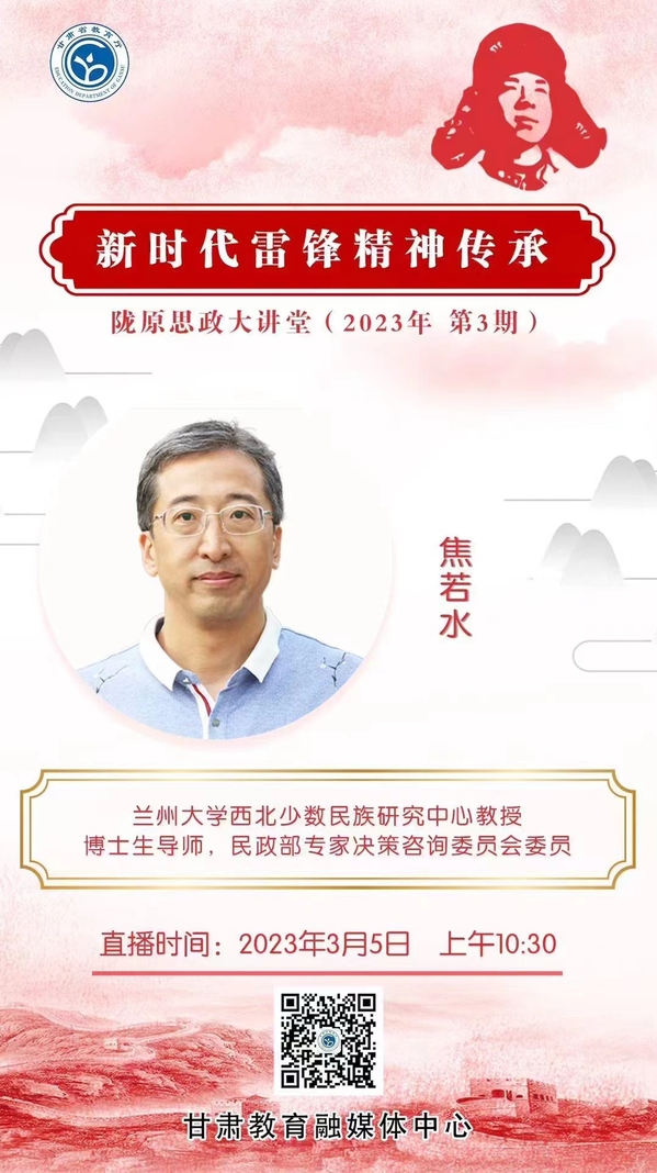 陇原思政大讲堂——新时代雷锋精神传承讲座(2023年第三期)通知