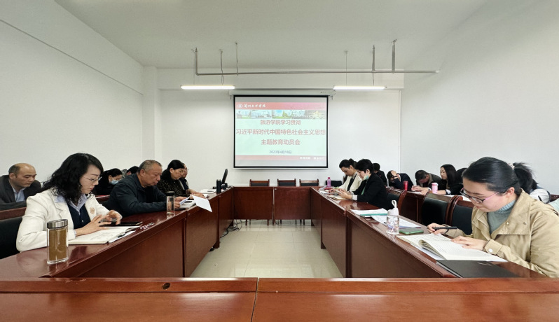 4月18日下午,旅游学院召开学习贯彻习近平新时代中国特色社会主义思想主题教育动员会,会议由学院党总支书记刘锐主持,全体教职工及学生党员代表参加了会议。