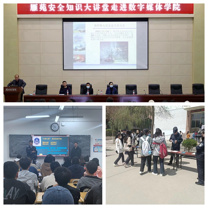 谋举措、出实招,高标准进位升级。为有效防止涉校涉生安全事故发生,营造良好的教育教学环境,提升师生安全感和满意度,保卫处积极联系辖区派出所、城管、街道、社区积极开展校园安全教育、周边环境综合治理工作。坚持“守底线、查隐患、保安全”的工作原则,针对校园周边的酒吧、KTV、宾馆等八类公共场所进行涉稳安全摸排,为广大师生创建了一个安全、舒适的校园周边环境;积极协调辖区派出所民警走进校园、走进教室开展安全教育和反电诈防范;积极配合安全部门、公安部门稳妥做好涉及学校师生的各类安全稳定工作;邀请辖区街道、社区进校园积极开展反邪教及其他安全教育宣传工作;主动出击,积极协调兰州市交警支队稳妥推进滨河路大门道路安全设施建设工作;大力开展“雁苑安全大讲堂”系列活动,邀请专业人士进学院、进课堂进行消防知识、紧急疏散宣传教育,提升师生安全意识。
