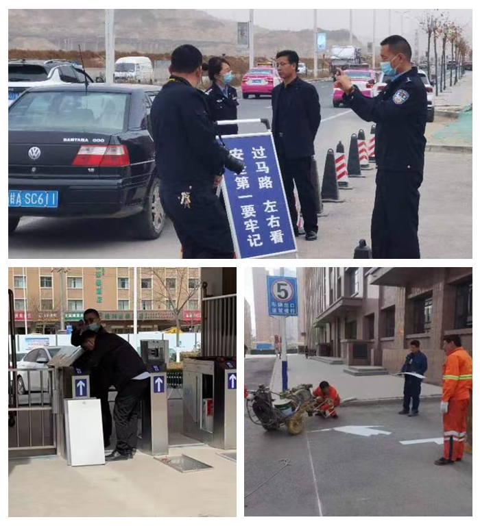 把方向、厘思路,高站位谋划布局。为确保校园交通安全、方便师生出行,保卫处本着“安全第一、人车分流”的原则,在积极调研、实地察看、分析研判的基础上,邀请交管部门专业人士现场察看指导,对南、北校区校园行车路线进行了优化调整,设置了标识牌、标识线;积极协调信息中心优化升级各门岗出入管理系统,第一时间对新建滨河路大门进行监控增设,最大限度保障师生安全;积极协调国资处更新各门岗车辆自动识别升降杆管理电脑及北校区北大门伸缩门和部分办公家具,有效提升了工作效率。