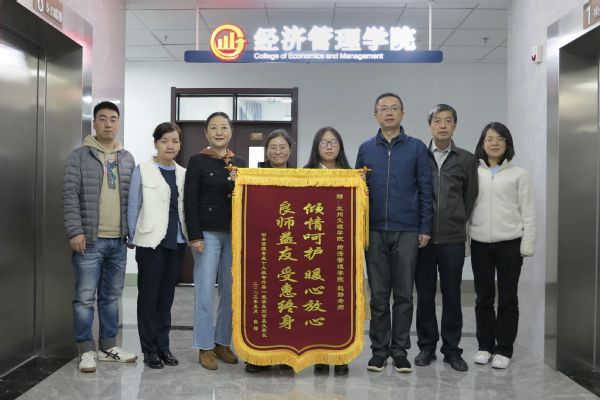 4月28日上午,经济管理学院2019级财务管理1班学生刘可晶及其母亲向学院赠送写有“倾情呵护 暖心放心,良师益友 受惠终生”的锦旗,以此感谢学校、学院和班主任在疫情防控期间的付出。
