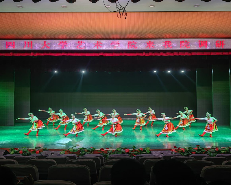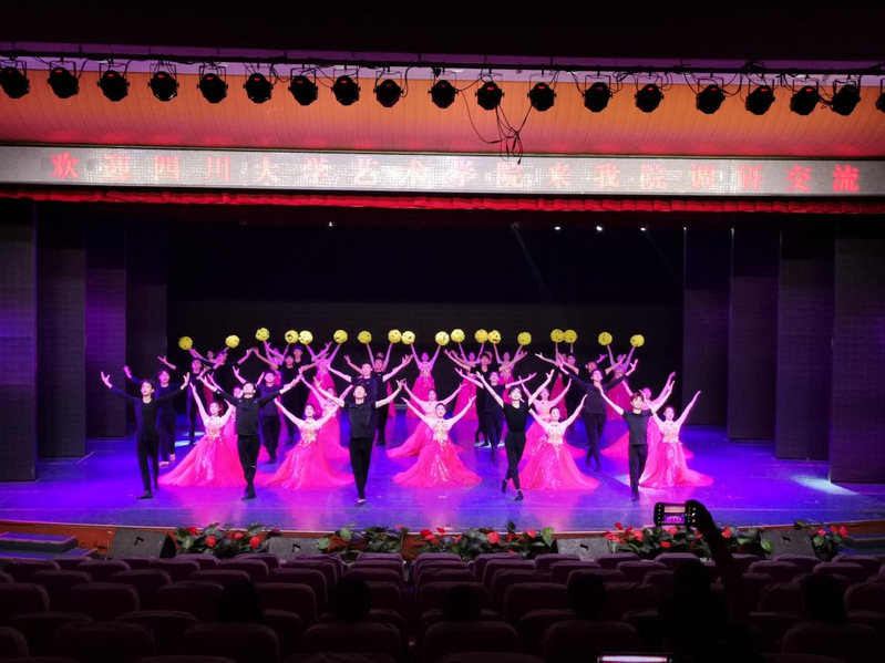 座谈交流后,学院为四川大学艺术学院一行进行了教学成果展示,同学们以饱满的热情、蓬勃的朝气、精湛的动作倾情演出,尽展风采,倾尽全力用心用情地认真完成每一部作品,充分展示了学院人才培养质量和教学成果,得到四川大学艺术学院老师们的一致好评。