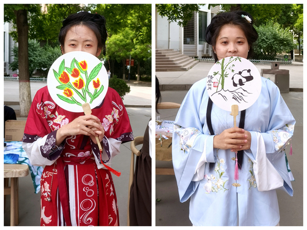 5月21日,学校思源楼广场热闹非凡,博彧国学社、书法协会、奕鸣美术协会共同举办“雁苑云裳 国风‘小满’”汉服文化展系列活动。