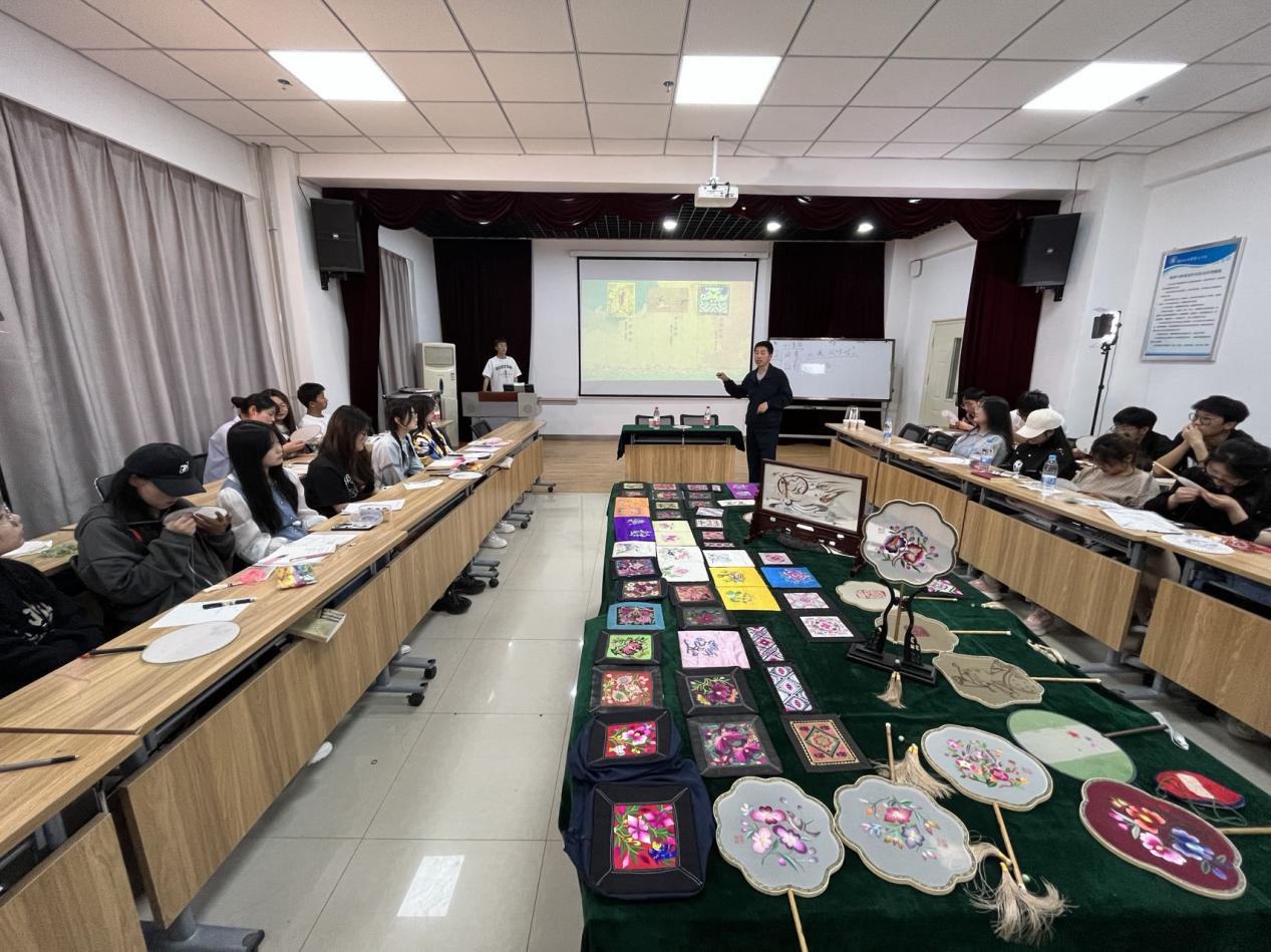 刘云帆老师为同学们详细介绍了天水刺绣的历史、内涵、表现形式、技艺传承与创新。一幅幅精美刺绣作品的展示,让同学们感受到刺绣明艳的色彩中同时流动着音律的美感,体会精美的图案中饱含着鲜活的生命力,领略中国刺绣的魅力。