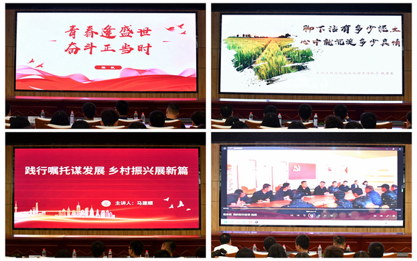 学校原驻庆城县桐川镇大滩村工作队成员分别以《扎根基层无悔青春乡村振兴书写担当》《脚底沾有多少泥土心中就沉淀多少真情》《青春逢盛世奋斗正当时》《践行嘱托谋发展乡村振兴展新篇》《倾心倾情帮扶乡村振兴有我》为题,从不同角度、不同层面讲述了他们在乡村振兴帮扶工作中的责任与担当、奋斗与奉献。抗洪抢险、疫情防控,帮独居老人干活、开展支教活动、帮高龄党员铺设自来水管道、为困难学生募捐爱心助学金……两年中,驻村干部们俯下身子、以村为家、不辞辛劳、用情帮扶,把汗水和热血播撒在了陇原大地上,用实干奋进为甘肃乡村发展作出实实在在的贡献。