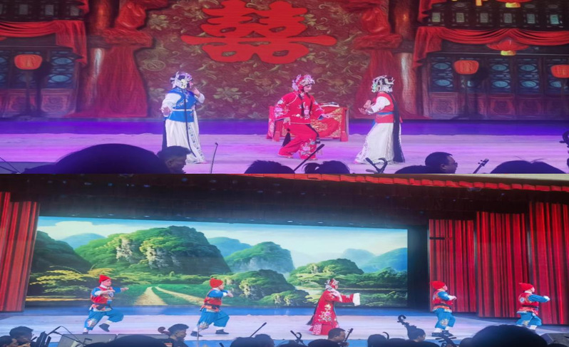 兰州戏曲剧院的艺术家们为师生带来一场内容丰富、精彩纷呈的视觉盛宴。其中有精彩的戏曲技术技巧荟萃展示,有经典的折子戏表演《挡马》《抬花轿》,有美妙动听的民族器乐演奏,更有场面劲爆、热闹非凡的武戏片段《穆桂英大破洪州》。现场演出赢得了在场师生和观众朋友们的热烈掌声和接连不断的叫好声。
