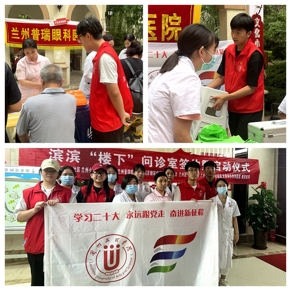 7月12日上午,实践团队配合兰州小草爱心社会工作服务中心、雁园街道雁滨社区及兰州普瑞眼科医院等多家专科医院共同开展“滨滨‘楼下’问诊”活动,协助各专科医院为社区老年人等群体开展健康咨询、答疑解惑,协助做好日常保健、慢性病防治、疫情防控知识宣讲等活动宣传与服务工作。