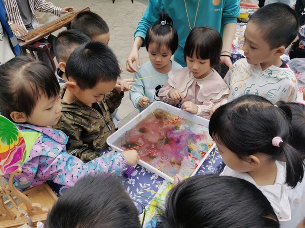 活动期间,学校充分发挥“甘肃省非物质文化遗产研究基地”“甘肃省非物质文化遗产传承教育实践基地”的作用,组织多位非遗专家分别展示了古琴、木板年画、水拓画、拓印、蛋雕、篆刻、手绘团扇等,并与前来观摩的党员干部和社区居民进行互动,拉近了非遗与社区居民的距离,同时,非遗老师从构图到调色认真讲解,社区居民兴致盎然地、零距离地动手参与,在实际体验中学习了非遗文化知识,提升了保护与传承非遗文化的责任感,增强了文化自信,推动了优秀传统文化的传承创新。