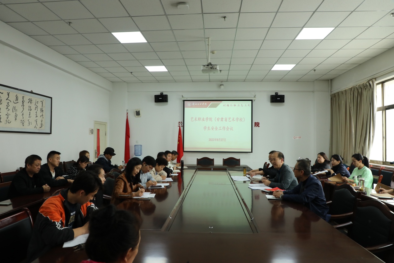 9月27日下午,艺术职业学院召开“双节”期间学生安全工作会议。学院党总支书记、主管学生工作副院长、学生科、分团委、全体班主任及宿管员参加会议。