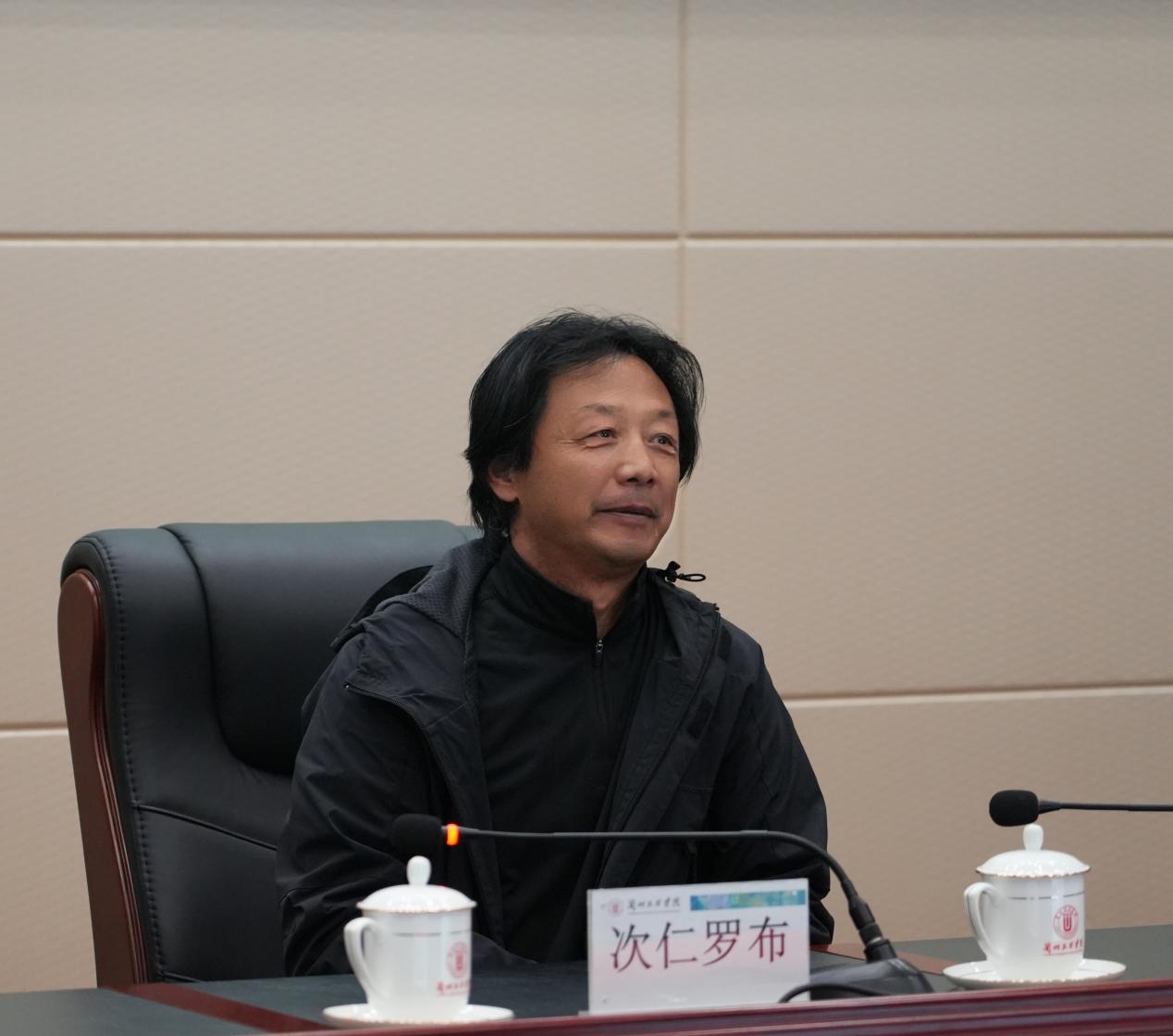 讲座尾声,藏族当代青年作家、第三届《达赛尔》文学奖获得者沙冒智化也与在场师生分享了他创作诗歌的心路历程。