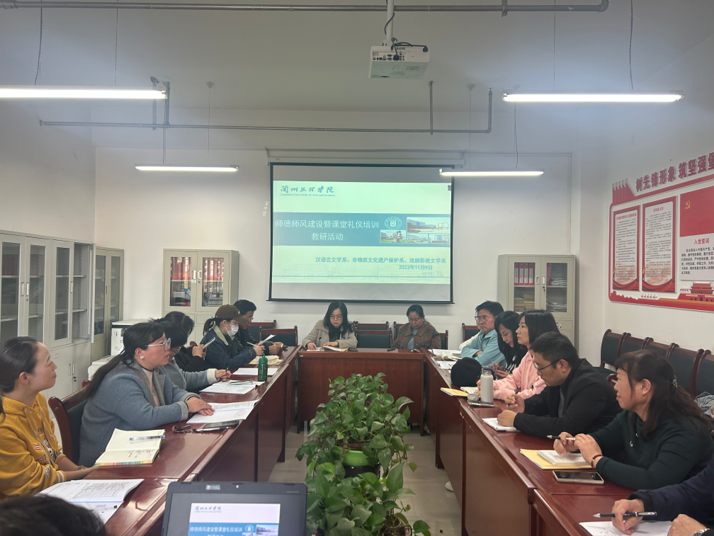自10月16日起,文学院开始了为期四周的“质量提升月”行动,全体教师已通过听课等方式完成了相应的预期任务。11月9日,文学院各专业在学院会议室联合进行了“听课评课交流”“师德师风建设暨课堂礼仪培训”“课程思政建设暨坚定意识形态”等系列教研活动,为本次“质量提升月”行动进行总结与成效展示。