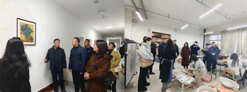 活动结束后,北面滩社区党委副书记一行参观了美术与环境学院装饰艺术实训中心,就下一步结对共建事宜进行了交流与沟通。