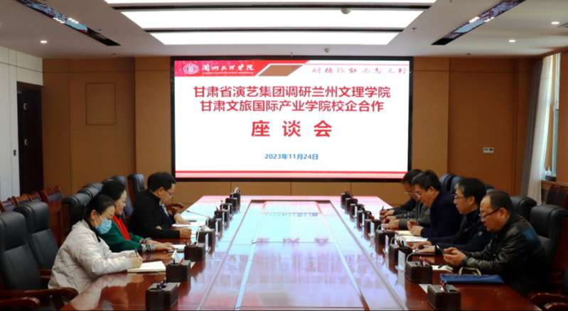 11月24日下午,省演艺集团党委书记、董事长陈其银,省文旅厅艺术处处长张林涛一行来校调研座谈,共商共建甘肃文旅国际产业学院事宜,常务副校长王顶明主持座谈会。