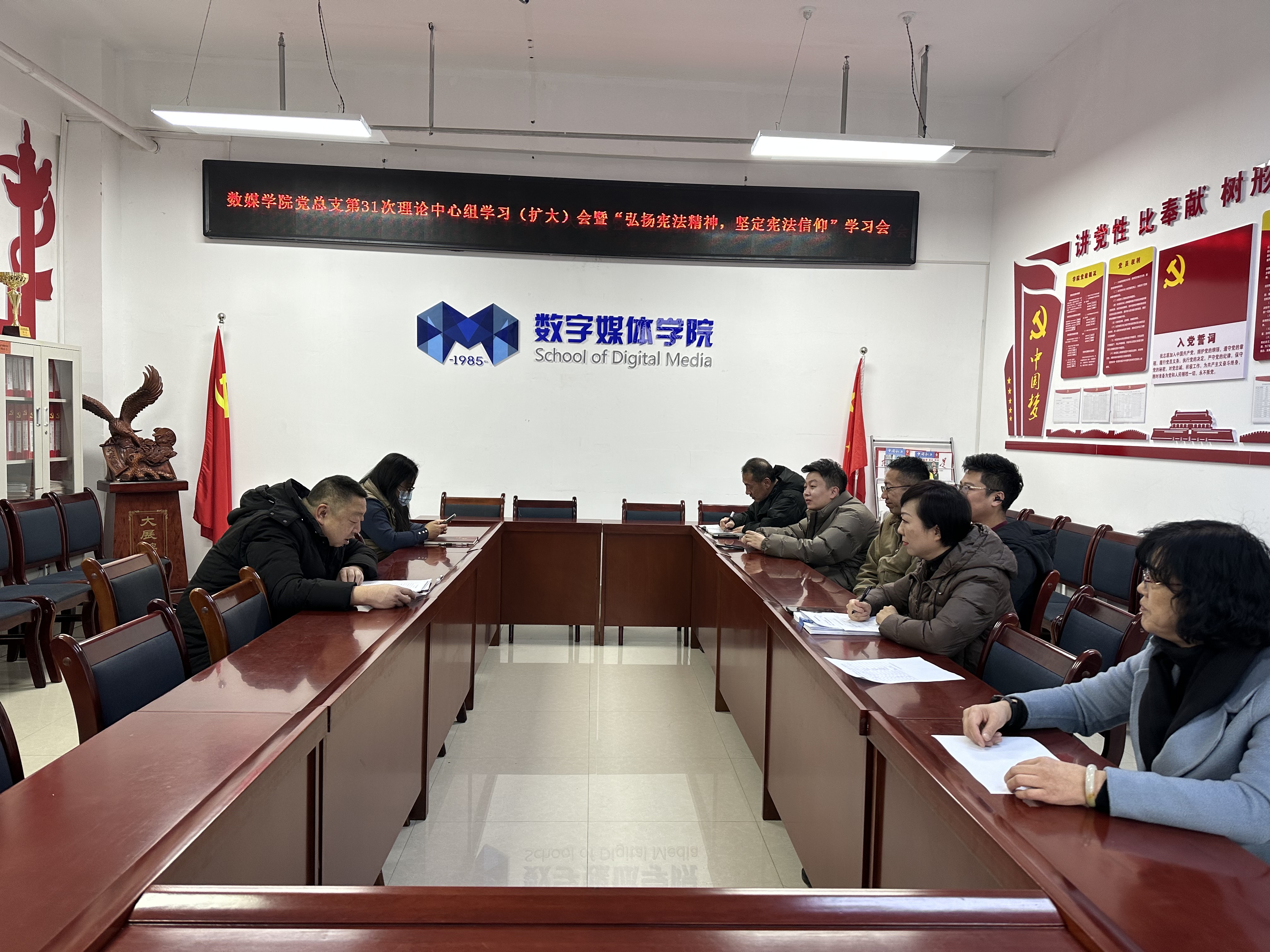 12月5日上午,数字媒体学院党总支在南校区1-815会议室召开2023年第31次理论中心组学习(扩大)会暨“弘扬宪法精神,坚定宪法信仰”学习会,学院中心组成员及各部门负责人参加。