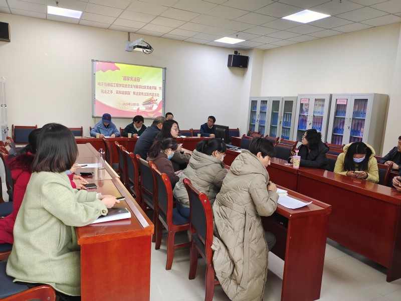 12月5日,传媒工程学院党总支与雁滨社区党委开展“携宪法之手,筑和谐家园”宪法宣讲主题共建活动,雁滨社区党委党员及学院全体党员教师参加活动。
