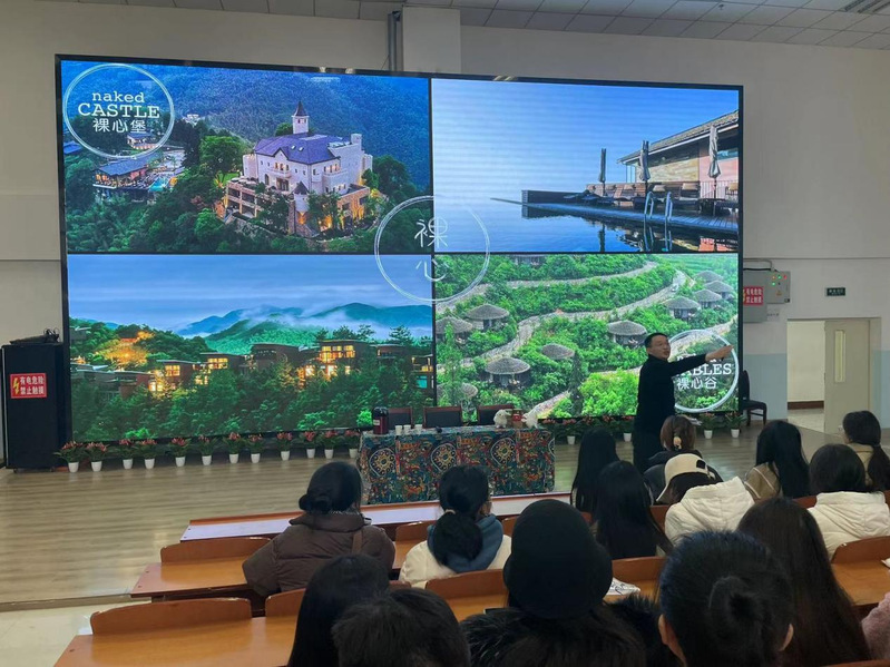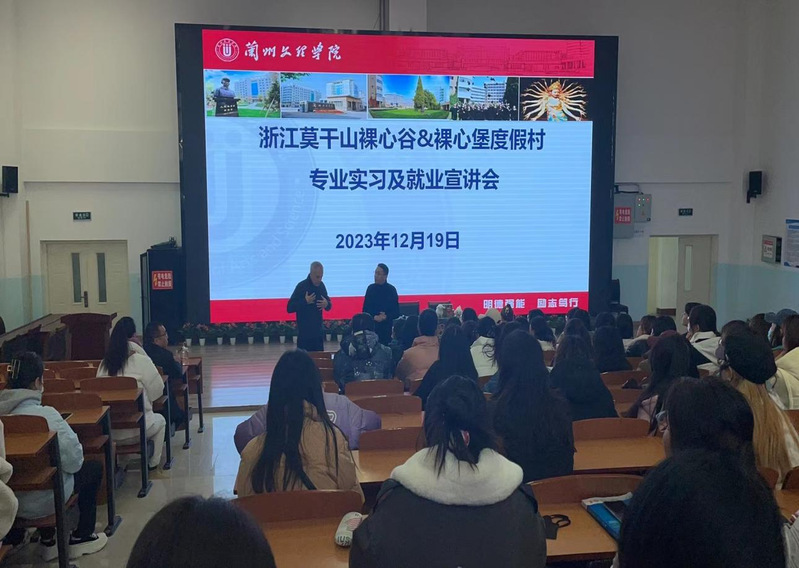 12月19日上午,国内度假酒店企业浙江省湖州市德清县驿站生态旅游开发有限公司(裸心谷度假村)、德清县三九坞生态园旅游开发有限公司(裸心堡度假村)区域总经理明泽(德籍)、区域人力资源总监潘政伟一行,在旅游学院开展专业实习及就业校园招聘宣讲会,学院部分老师及2024届、2025届学生100多人参加。