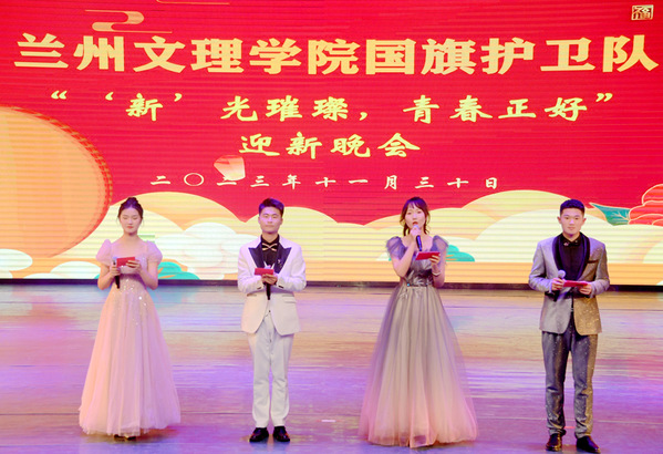 11月30日晚,bv伟德国际1946国旗护卫队“‘新’光璀璨,青春正好”迎新晚会在实验剧场顺利举行。学生工作部工作人员,各二级学院学生代表,强军协会、大学生记者团以及国旗护卫队全体队员参加。