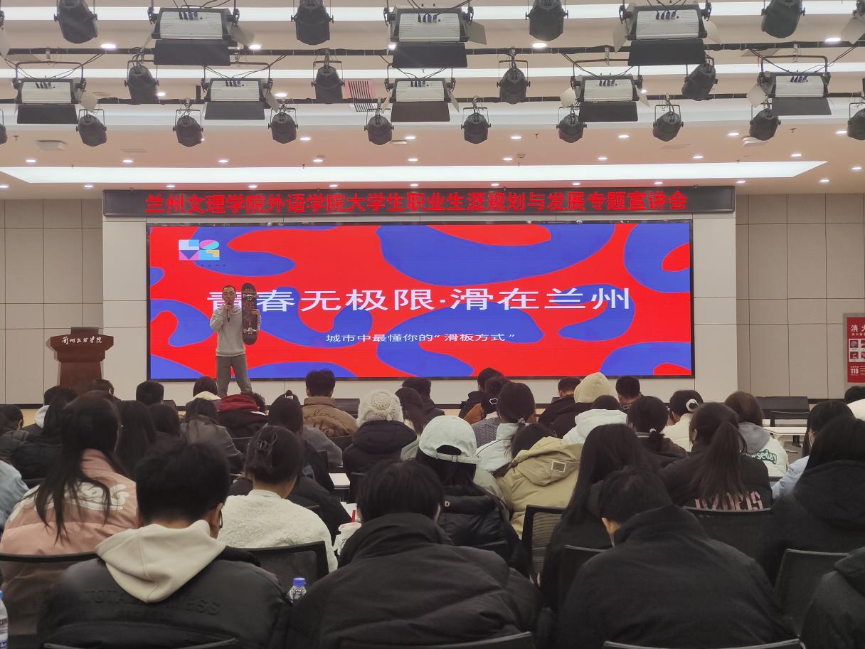 为引导学生明确今后学习目标和努力方向,清晰未来人生规划。1月4日下午,外语学院在文昌楼302学术报告厅举办了一场精彩纷呈的职业生涯规划专题宣讲会,邀请兰州市七里河区青年成长发展中心的安庆云、海珍、陶世之三位老师担任本次主讲嘉宾。学院党总支书记、团学办主任、辅导员和2021、2022、2023级学生等200余人参加活动。