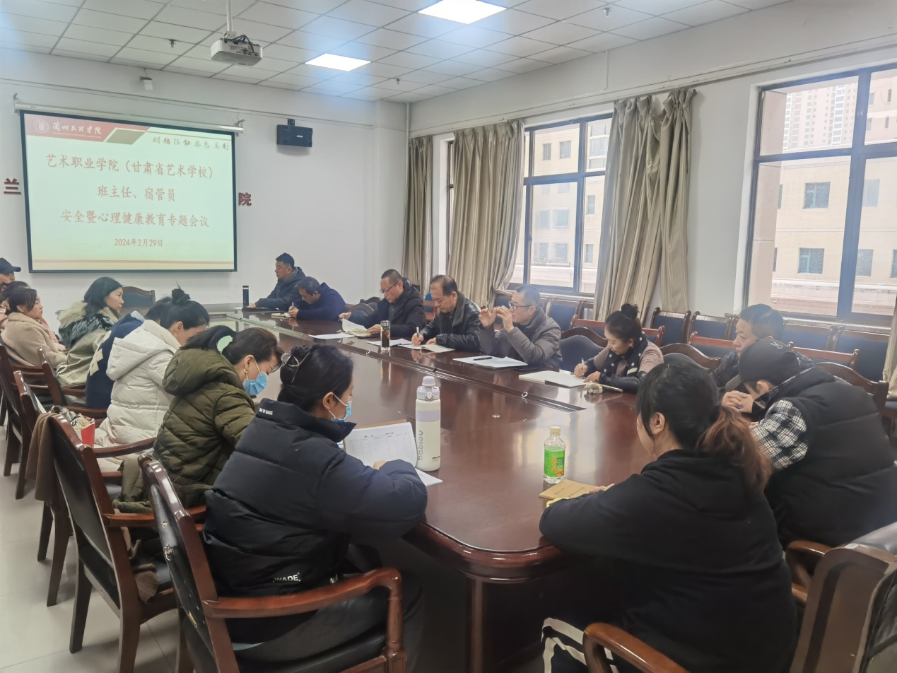 2月29日上午,艺术职业学院召开新学期第一次学生安全暨心理健康专题会议,党总支书记、主管副院长、学生科、全体班主任及宿管员参加会议。