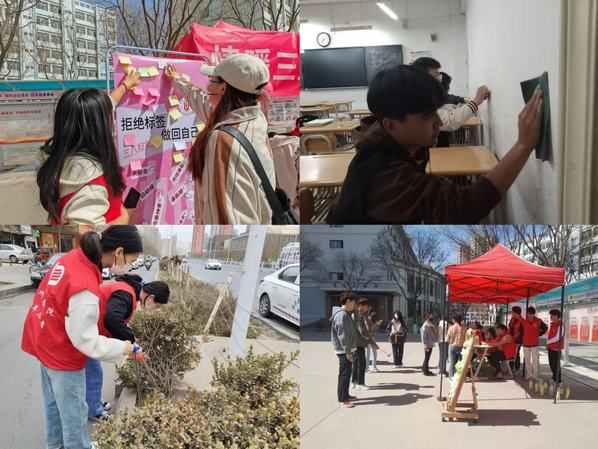 3月8日,为切实保障女性的身心健康,表达对女教师和女大学生的关爱,学院以“撕掉标签,拒绝被定义”为主题开展活动。在活动现场,同学们亲手撕掉对于女性具有恶意和歧视的标签,再用新的便利贴写下激励女性的语句,为参加活动的每一位同学送上美好的祝愿。通过这次活动,帮助女大学生拒绝外界标签,勇敢做自己。3月11日,志愿服务队组织志愿者们用砂纸认真清理了教室墙面的涂鸦与字迹,让教室墙壁焕然一新,用实际行动践行雷锋精神。3月17日,服务队组织志愿者清扫学校周围路面,使校园及其周边环境更加整洁美观,通过美化环境,增强了同学们的社会责任感。3月19日,为了创建文明、无烟、健康的校园环境,志愿者们清理学校路面及卫生死角的烟头,劝阻在校园内吸烟者,为无烟校园的建设贡献自己的力量。3月29日,在北校区思源楼小广场举办了以“节能减排,保卫蓝天”为主题的志愿服务活动,活动以知识竞赛的方式为同学们普及节能减排生活方式的相关知识。积极响应国家号召,引导同学们“低碳生活 从我做起”。