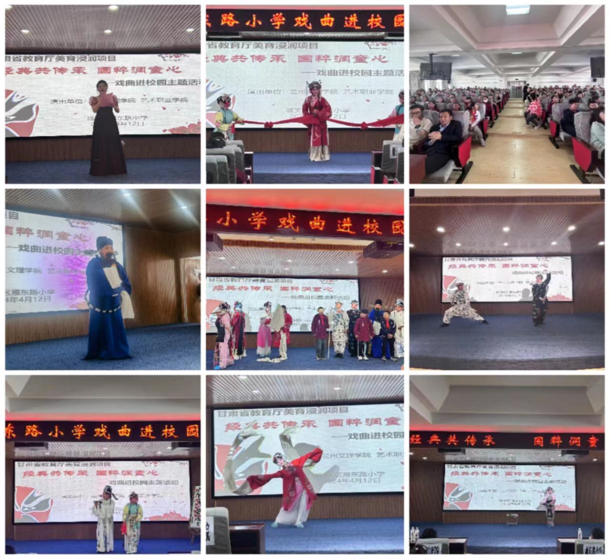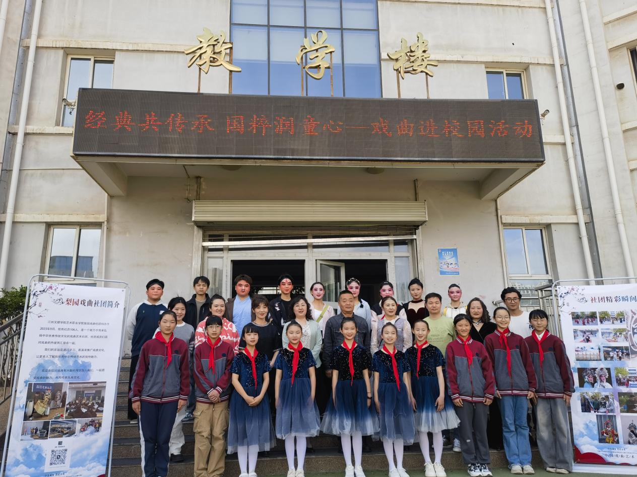 为贯彻落实甘肃省教育厅“体育美育浸润行动计划”工作安排,推进美育教育发展,传播中华优秀戏曲文化,4月12日下午由艺术职业学院分团委组织,梨园戏曲社团承办的戏曲进校园活动在雁东路小学成功举行。