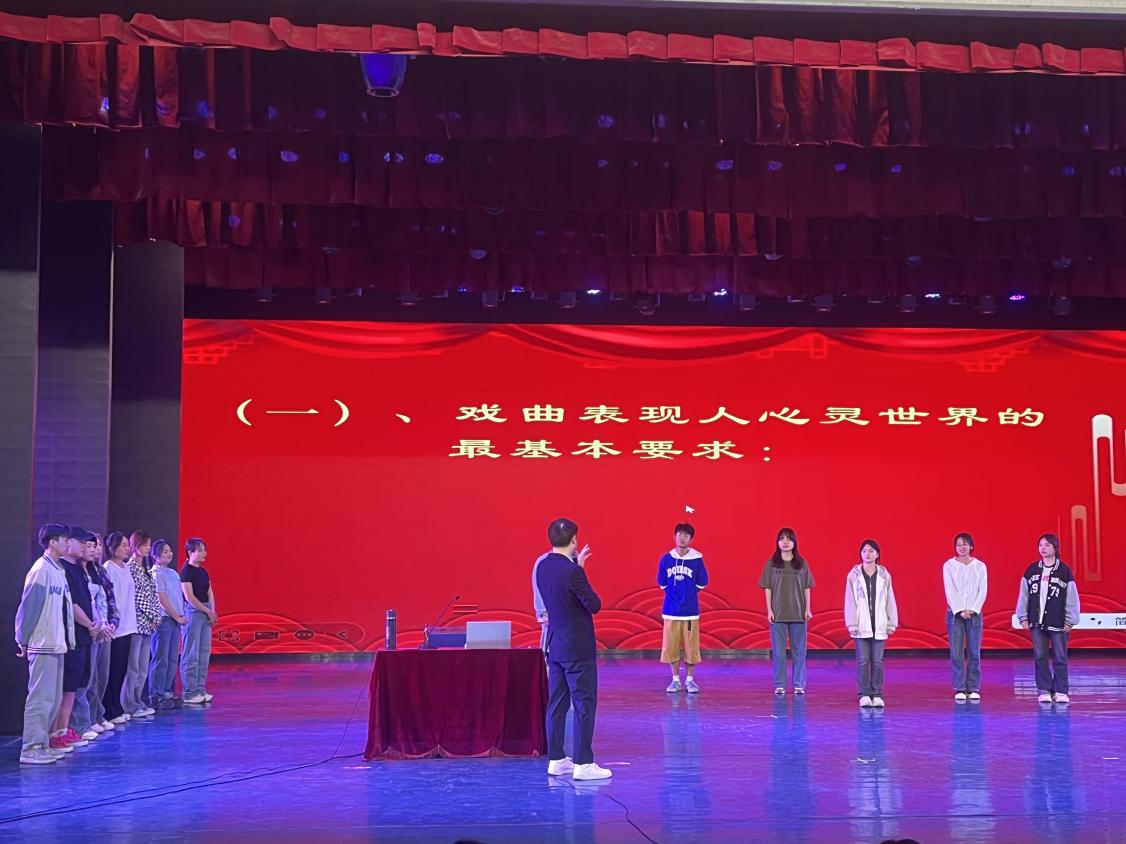 讲座主要围绕戏曲的本质再探、戏曲观众的双重审美、戏曲艺术的双重表现、对戏曲教育的思考等六个个方面全方位展开,强调在戏曲表演艺术中,不仅要将真情实感作为戏曲表现人心灵世界的最基本要求,而且要将心理体验转化为“四功五法”的技术表现,阐述了“一方戏曲舞台,满载心灵徘徊”的艺术见解。讲座中还穿插进行了“戏曲表现与生活形态比较”“心理体验转化为戏曲演唱情感”“心理体验转化为戏曲心理活动表演”等一系列戏曲表演辅助练习,与学生积极互动,让同学们深刻地感受到了我国戏曲艺术的博大精深。