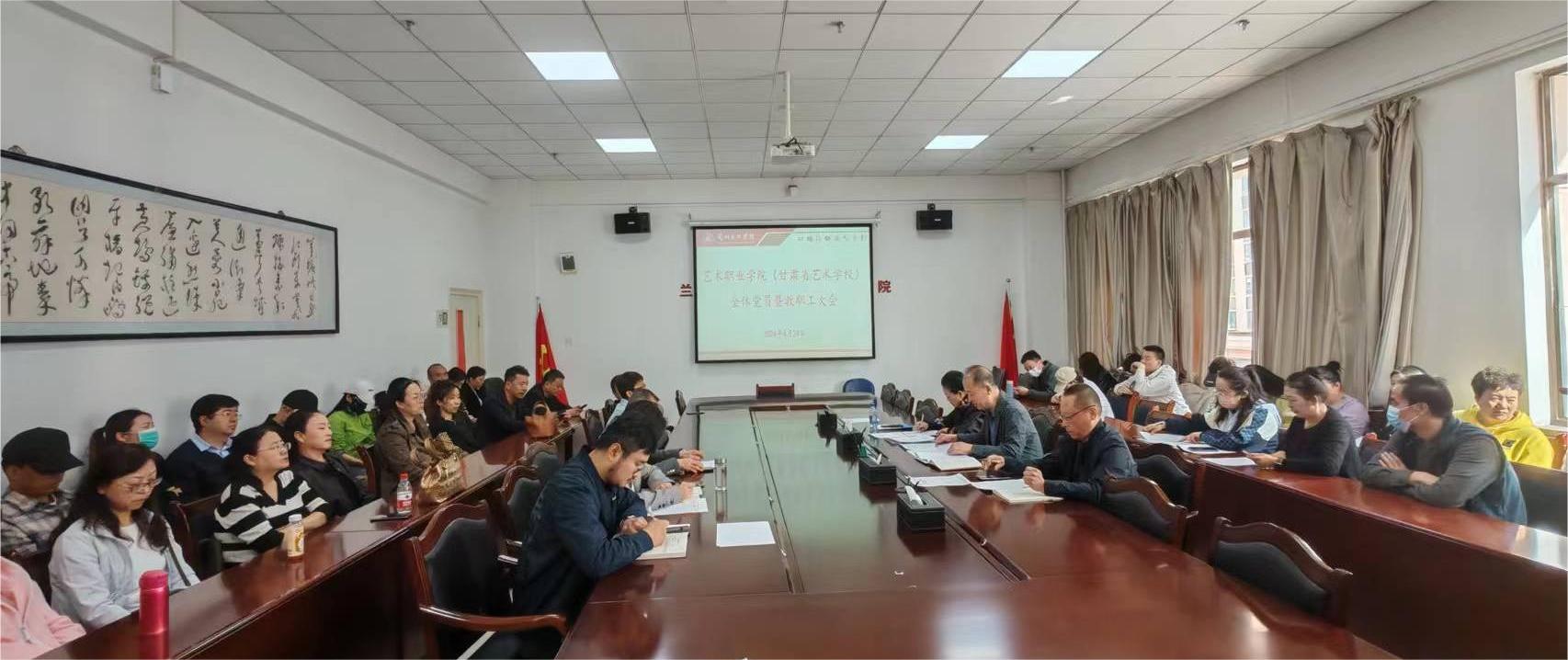 4月24日下午,艺术职业学院在笃行楼二楼会议室召开教职工大会暨全体党员党纪学习教育专题会,学院全体教职工参加会议。