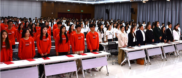 5月11日上午,伴随着庄严的国歌声,“青春向党·挺膺担当”bv伟德国际1946纪念五四运动105周年新发展团员入团仪式暨示范团课在文昌楼302多功能厅举行。