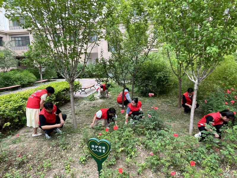 会后,教工党员、学生党员在明德楼与励志楼之间花园一起进行了义务劳动。
