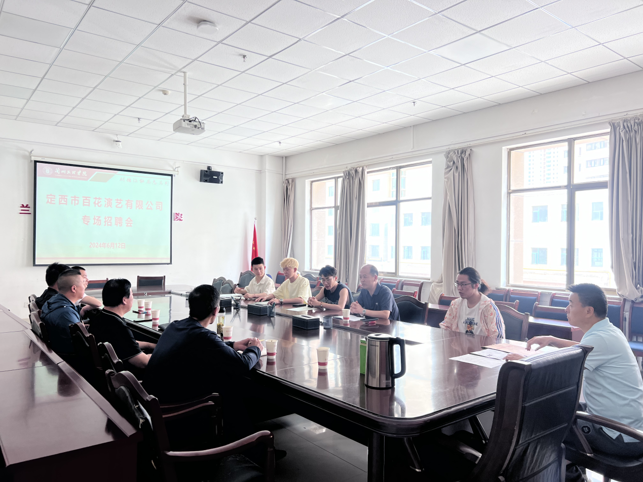 6月12日、13日上午,定西市百花演艺有限公司、甘肃安万文化传媒有限公司在我院会议室召开专场招聘会,24届未就业学生、25届毕业生参加此次招聘会。