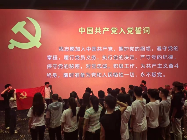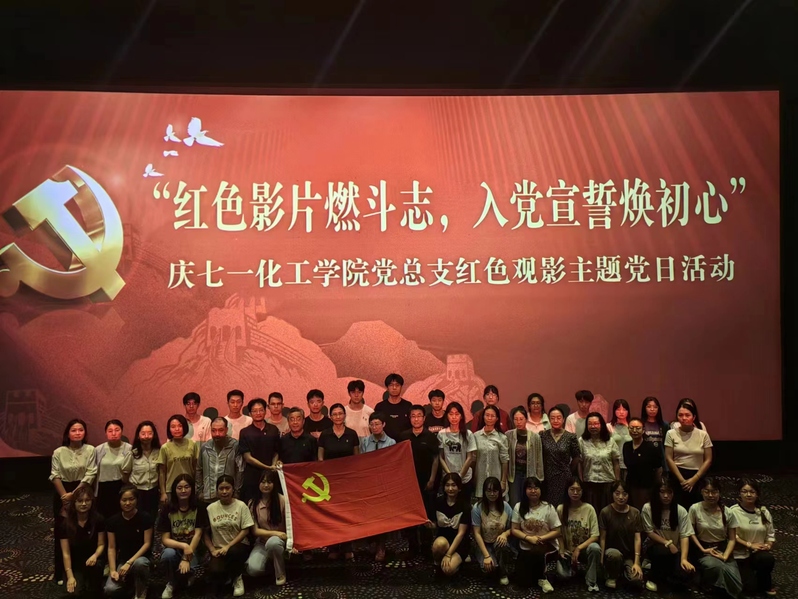 为庆祝中国共产党成立103周年,激励广大党员以实干担当诠释初心使命,不断提升基层党支部的凝聚力和战斗力,6月28日,化工学院教工党支部携手学生支部联合开展“红色影片燃斗志,入党宣誓焕初心”庆七一红色观影主题党日活动。