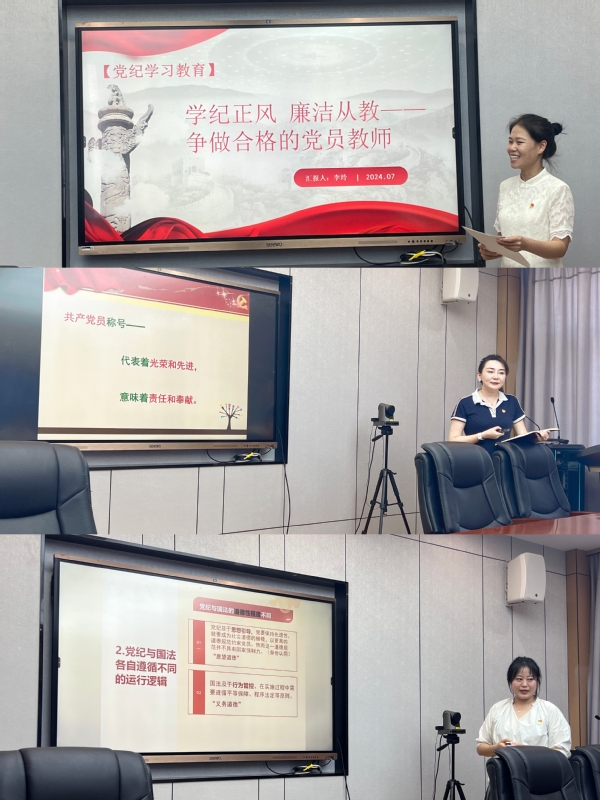 会上,机关青年党员理论学习小组成员结合本职工作、自身专业分别以《“学纪正风 廉洁从教——争做合格的党员教师”》《加强党性修养 提高党员综合素质》《党纪与国法的关系》为题,进行党课微宣讲。