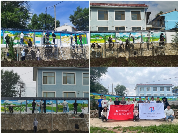实践团成员发挥专业特长,4人一组在炎炎烈日下默契合作,将乡土情融入艺术美,将艺术创作与乡村文化生活完美融合,在长约55米,高约1.8米的墙面上绘制完成画作12幅,用画笔描绘出一幅幅具有乡村独特韵味的美丽墙绘。一幅幅灵动的图画沿路徐徐展开,赋予了乡村新的面貌,是提升乡村文化内涵的新亮点,成为哈班岔村一道靓丽的“风景线”。