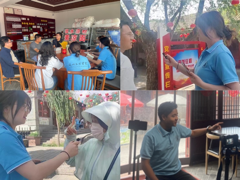 发挥专业特长,助力乡村旅游发展。兰州市榆中县浪街村2021年被评为全国乡村旅游重点村,是国家级AAA级景区。实践团队通过访谈村支书,采访游客、当地商户与村民,深入了解了浪街村农耕文化发展与当地旅游现状。根据浪街旅游发展现状,团队成员充分发挥专业优势,结合景区的特色与亮点,制定出景区直播方案。从住宿区域到浪街城门和街道,直播中同学们详细介绍了“浪街”这一名字的由来、特色美食以及景区内的娱乐项目等,将浪街的特色旅游产品和服务展现给更多的网民,助推浪街旅游产业发展。