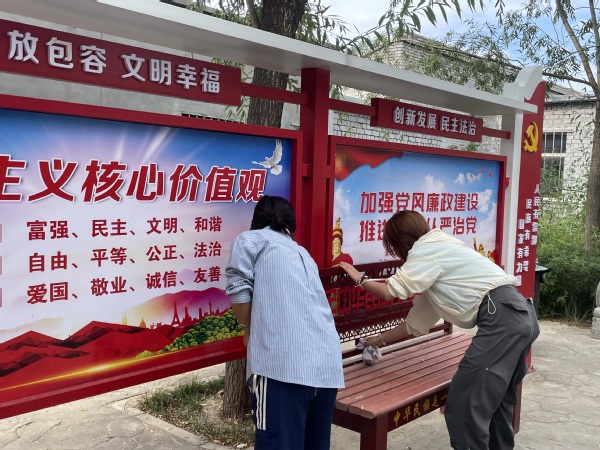 开展乡村环境整治,提升和美乡村“颜值”。为使当地游客有更好的旅游体验,实践团队对街道、立牌、长椅等进行细致全面的清洁,大家明确分工,处处涌现着忙碌的身影,经过同学们的努力,整个街道焕然一新。