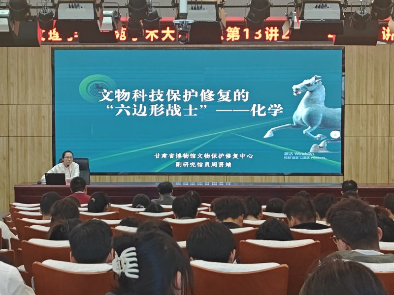 10月24日下午,教师发展中心主办、化工学院承办的“雁苑学术大讲堂”系列第13讲在文昌楼学术报告厅(303)举办。本讲特邀甘肃省博物馆研究馆员周贤婧做题为《文物科技保护修复工作的“六边形战士”——化学》的学术报告,学院师生200余人参加。