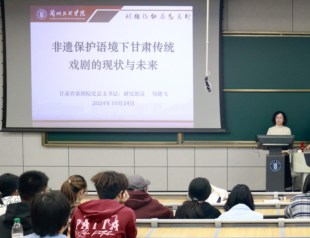 10月24日下午,文学院邀请甘肃省歌剧院党总支书记、研究馆员苟晓飞来校作《非遗保护语境下甘肃传统戏剧的现状与未来》专题讲座,文学院师生共150余人参加。