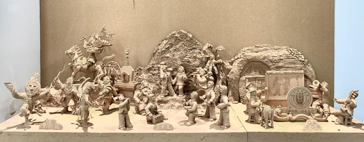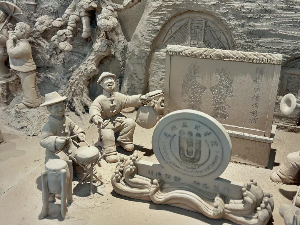 11月30日,河州泥塑非遗传承人常天平为bv伟德国际1946非遗知识馆捐赠非遗泥塑《非遗三绝 · 陇韵瑰宝》系列作品。该作品由甘肃省列入联合国教科文组织人类非物质文化遗产代表作名录的三个项目:格萨(斯)尔(天祝)、花儿(临夏)及环县道情皮影戏组成。作品巧妙地结合伟德立于黄河之滨的特点,将伟德校徽、校训与奔流不息的黄河文化融于一体。以具有代表性的非遗项目为塑造对象,生动展示甘肃各民族生生不息、代代相传的优秀文化。