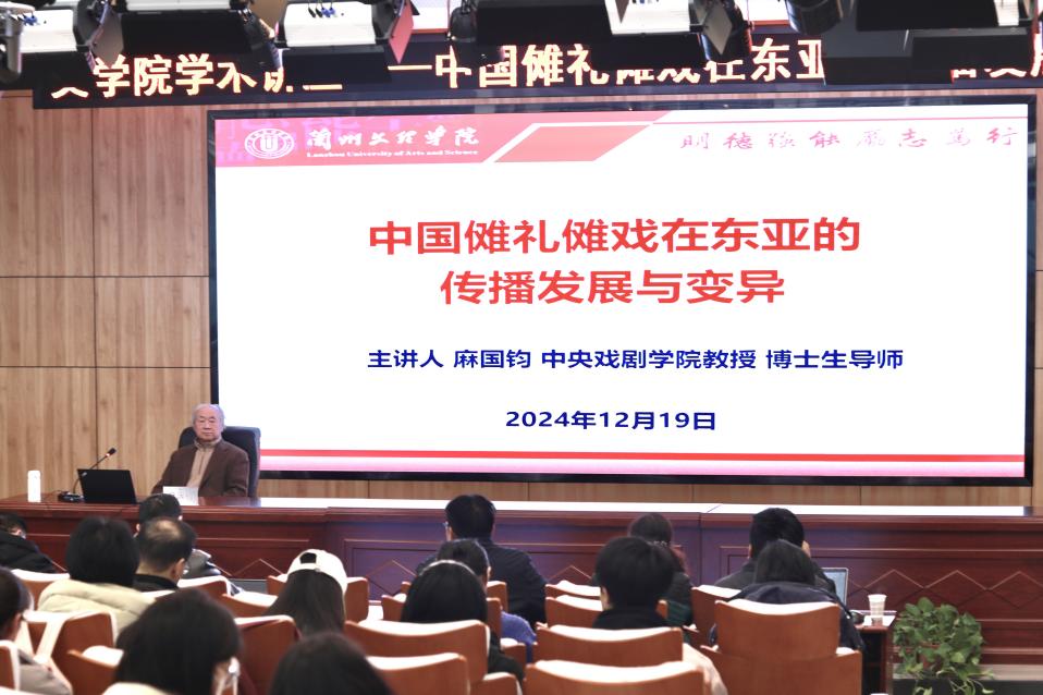 12月19日下午,应文学院邀请,中央戏剧学院教授、博士生导师、文化部优秀专家麻国钧教授在伟德学术报告厅为文学院师生作了题为“中国傩礼傩戏在东亚的传播发展与变异”的学术讲座。文学院教师、甘肃傩面艺术传承人及23级非遗、戏文与24级汉语言文学专升本专业学生参加。