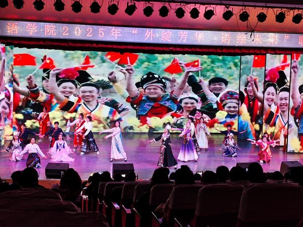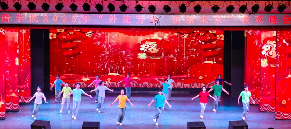 院长在致辞回顾了过去一年学院师生取得的进步与成绩。晚会在舞蹈《相亲相爱》中拉开帷幕,热情洋溢的舞蹈、浸润心田的歌曲、慷慨激昂的朗诵、引人入胜的多语种配音、音符跳跃的吉他弹唱、美妙悠扬的钢琴独奏等轮番上演,充分展示了专业特色和师生们的多才多艺。民族舞蹈《美丽中国》从草原的辽阔到水乡的柔情,都是对多元文化的最好诠释;英文朗诵《Youth》诉说着青春的无畏和对梦想的执着追求;中文朗诵《大漠敦煌》带我们走进华夏文明开启的地方,历史的风沙落下,掩不住数千年文明的垂眸;《声临其境》带我们在不同的语言韵律和文化画卷中穿梭。党总支书记和教师代表深情献唱,用温暖的歌声传递着对学子们的深深祝福与期许。晚会在大合唱《一起向未来》中落下帷幕。