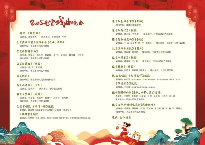 2月8日,农历正月十一日,平凉市2025年元宵戏曲晚会在平凉剧院精彩上演。伟德艺术职业学院戏曲专业师生受邀参演,与众多戏曲名家同台献艺,为观众呈现了一场精彩纷呈的戏曲盛宴,营造了浓厚的节日文化氛围。