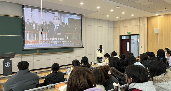 外语学院2024级预科文1班马婧:学习2025年全国两会精神,我深感这是一场展望未来、擘画发展蓝图的盛会。政府工作报告贯穿“以人民为中心”的发展思想,从优化教育资源、提升医疗保障,到完善养老服务、拓展就业岗位,桩桩件件尽显党和政府“为民谋利、为民尽责”的深厚情怀。新时代青年也应将人民置顶,努力学习专业知识,提升自身修养,以实际行动服务、回馈社会,在民族复兴征程中书写青春华章。