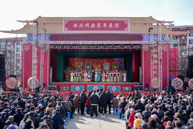 3月16日,由中国戏曲表演学会、甘肃省文化和旅游厅、天水市人民政府共同主办的“跟着艺术游甘肃”西北戏曲荟萃展演活动在甘肃省天水市伏羲广场启幕。来自西北五省的14家秦腔艺术院团将呈现代表性剧目演出、戏迷争霸赛、秦腔大巡游及快闪等精彩内容。