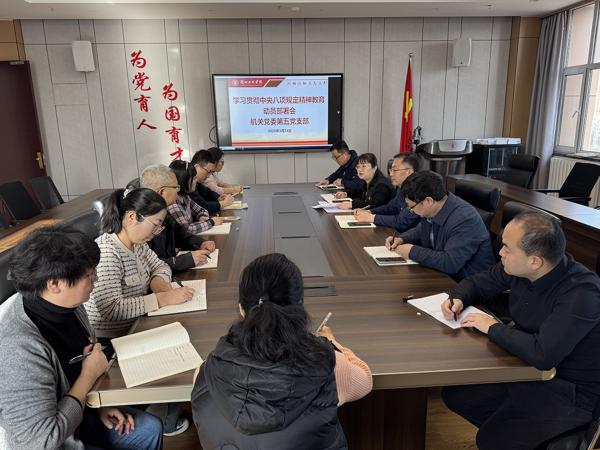 3月24日,机关党委第五党支部召开党员大会,深入传达学习学校、机关党委关于贯彻中央八项规定精神的学习教育会议精神和要求,并研究部署支部具体贯彻落实工作。