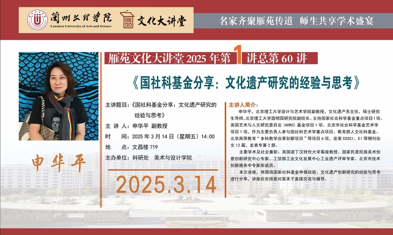 雁苑文化大讲堂预告:文化遗产研究的经验与思考