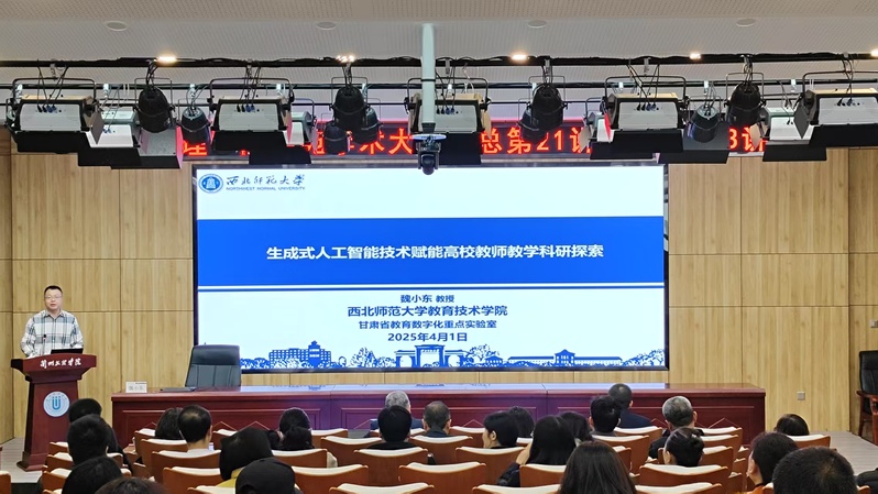 4月1日上午,西北师范大学教育技术学院博士生导师魏小东教授应邀来伟德做“生成式人工智能技术赋能高校教师教学科研探索”学术报告,报告由科研处负责人主持。