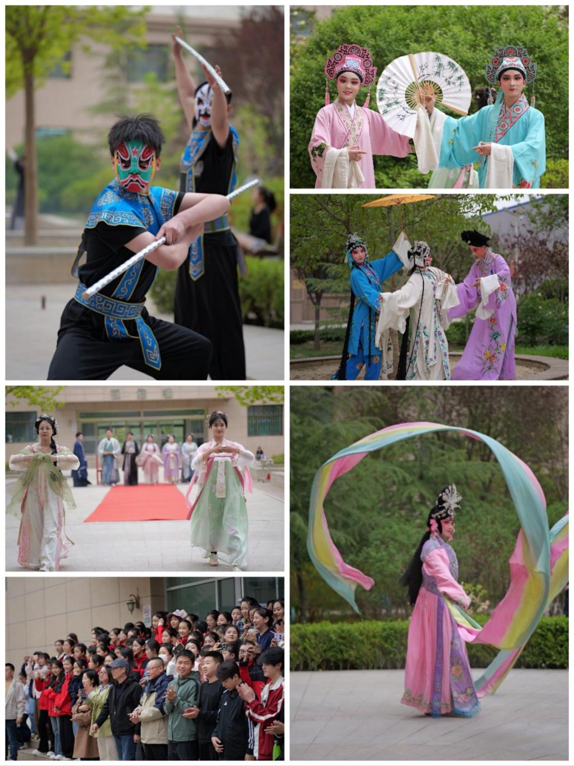 活动现场,内容丰富、亮点频出。梨园社团学生身着精美戏服,精彩演绎经典戏曲片段,一招一式尽显专业素养,生动展现出青年学子对传统文化的深厚热爱与传承决心。