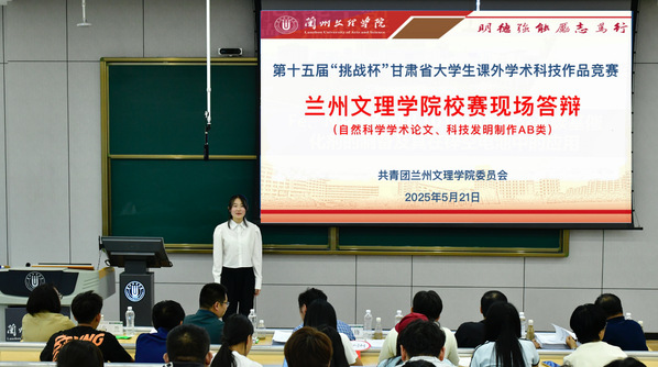 5月21日下午,第十五届“挑战杯”甘肃省大学生课外学术科技作品竞赛bv伟德国际1946校赛现场答辩在文昌楼304、305教室举行。