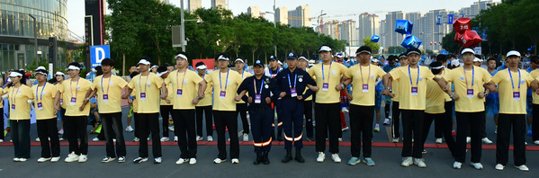 本次志愿服务工作分为检录组与群众活动组。凌晨3点30分,当城市还在沉睡,检录组志愿者已迅速集结完毕,奔赴奥体中心赛道集结区。他们严格遵循“全半程混合分区”机制,对选手的参赛信息进行逐一细致核对。为保障选手有序分区入场,志愿者们手挽手筑起一道坚固的“人墙”,在晨光微露中,以严谨负责的态度为赛事顺利启幕筑牢安全屏障。